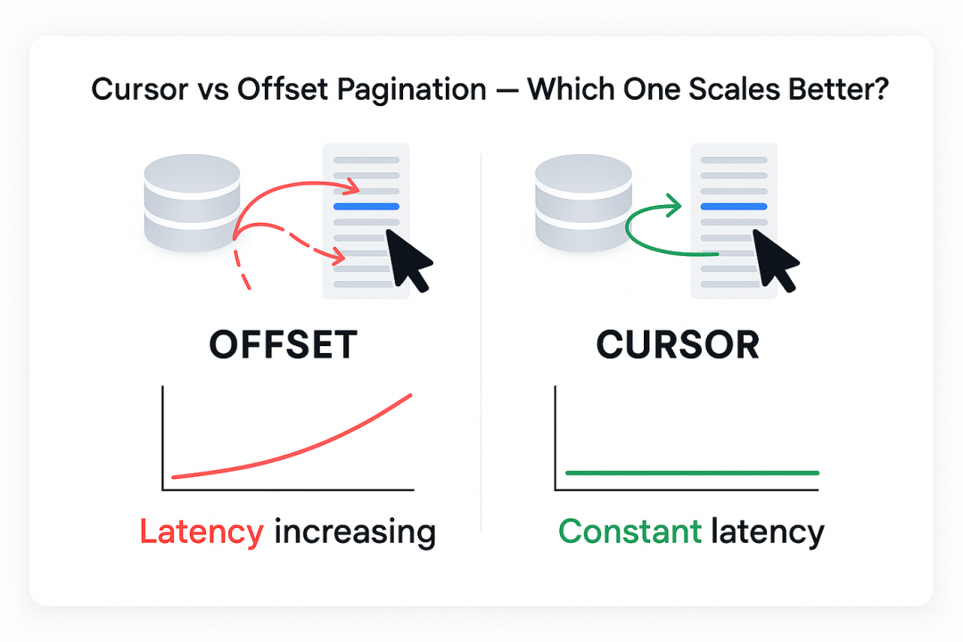 最直观的做法是偏移量分页(offset/limit),但这种做法在数据量大时会出现严重性能问题:数据库为 OFFSET 100000 之类的查询需要从头跳过十万行,越到后面越慢。