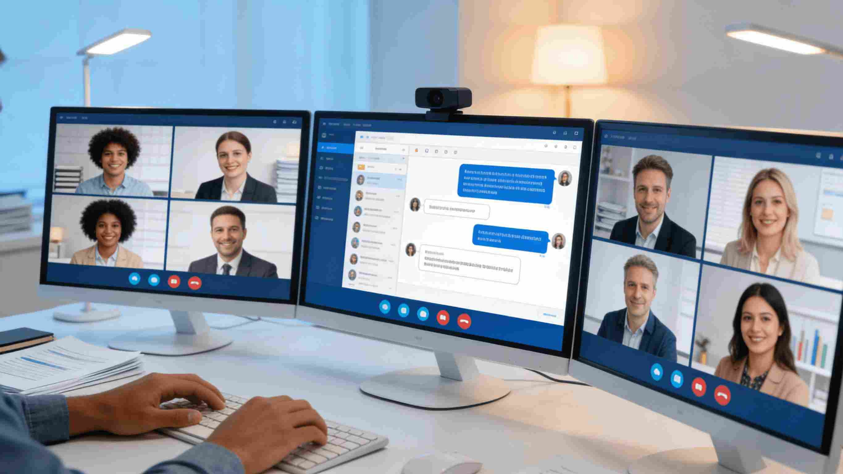 - 终端层:主要负责音视频的采集与输出渲染,分为硬件终端和软件客户端两类。硬件终端代表产品如华为IdeaHub、Polycom会议室专用设备,一般都集成了4K高清摄像头、线性麦克风阵列等专业组件;软件客户端则以Zoom、腾讯会议等应用为代表,支持PC、手机、浏览器等多终端灵活接入,适配不同参会场景。