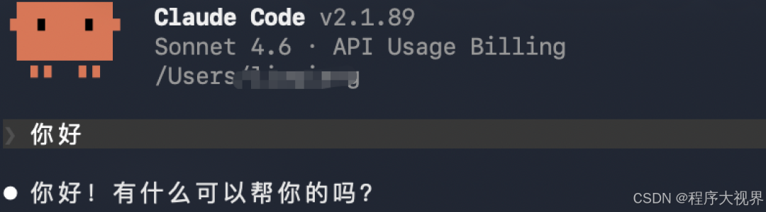 出现如图所示即代表claude Code在你的电脑已经成功安装并设置了代理和API KEY可以使用了。