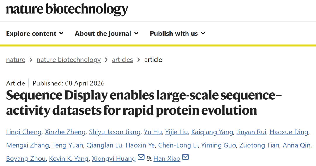 Cheng, L., Zheng, X., Jiang, S.J. et al. Sequence Display enables large-scale sequence–activity datasets for rapid protein evolution. Nat Biotechnol (2026).