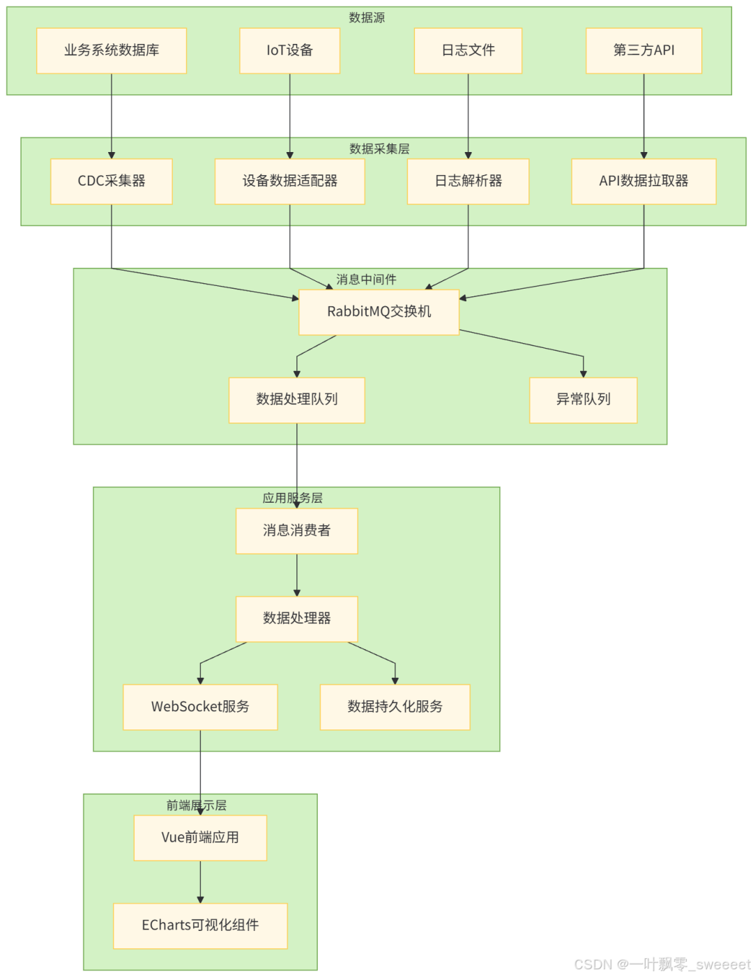 下面是系统的整体架构图,清晰展示了数据从产生到最终展示的完整流程: