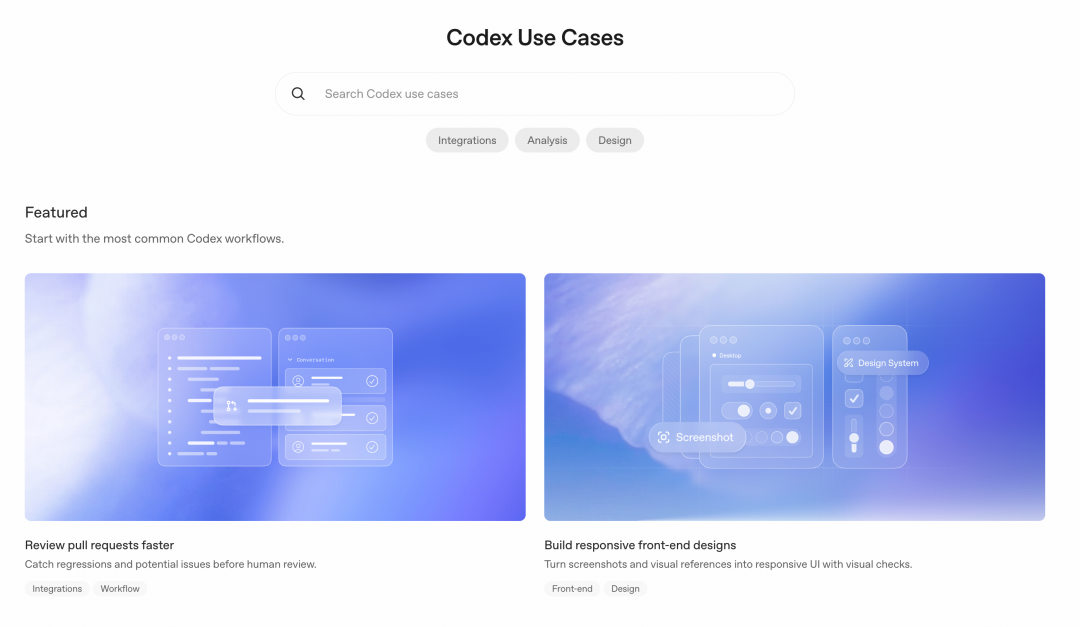 第一步:访问 OpenAI Codex 官方 Use Cases 页面。 第二步:找到与你当前工作最相关的场景,点击进入。 第三步:按照官方提供的步骤,在你的项目中尝试集成。