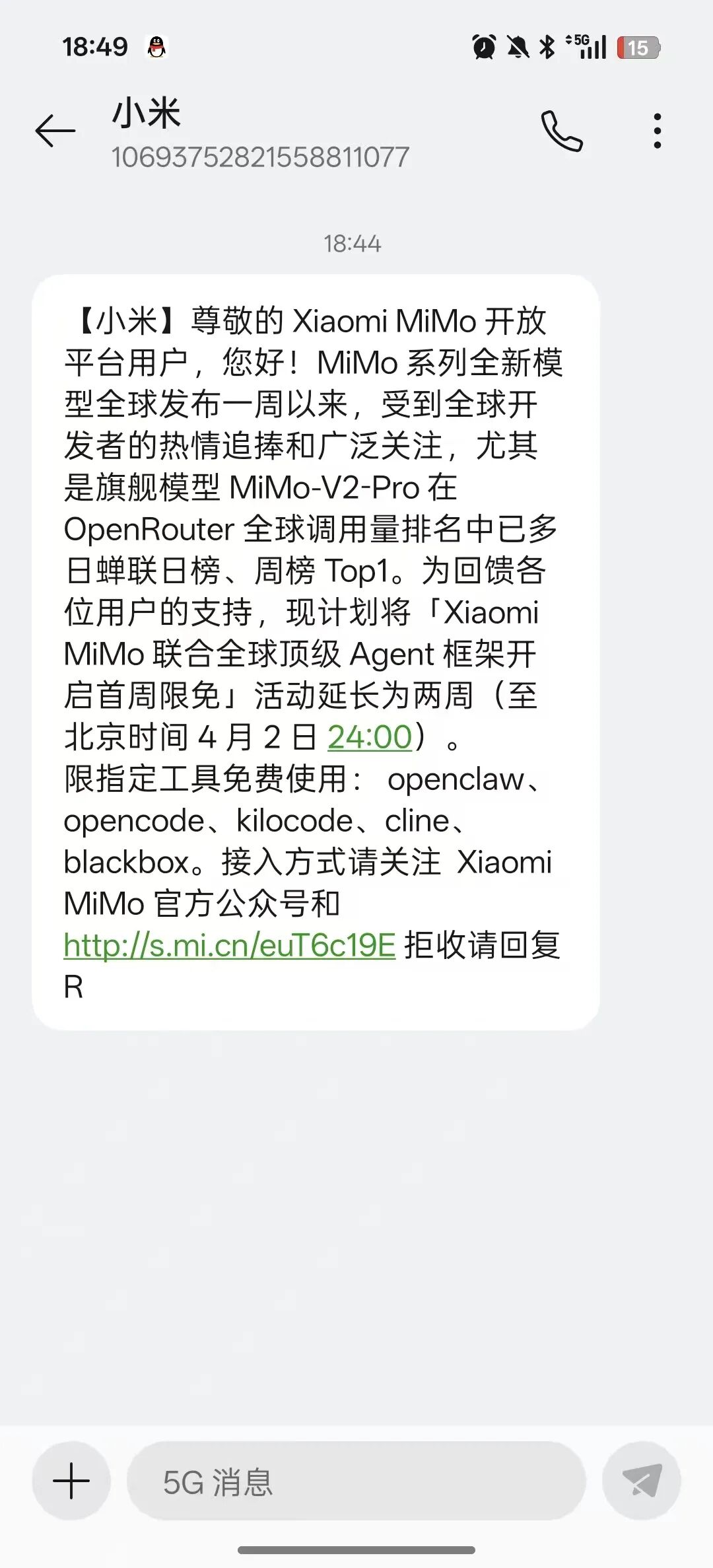 免费福利仅剩最后几天,4月2日之后将恢复收费,趁现在赶紧配置使用,把该做的任务、该测试的功能一次性搞定。后续小米还计划开源部分MiMo模型,生态前景值得期待,现在提前上手熟悉,还能抢占技术先机。