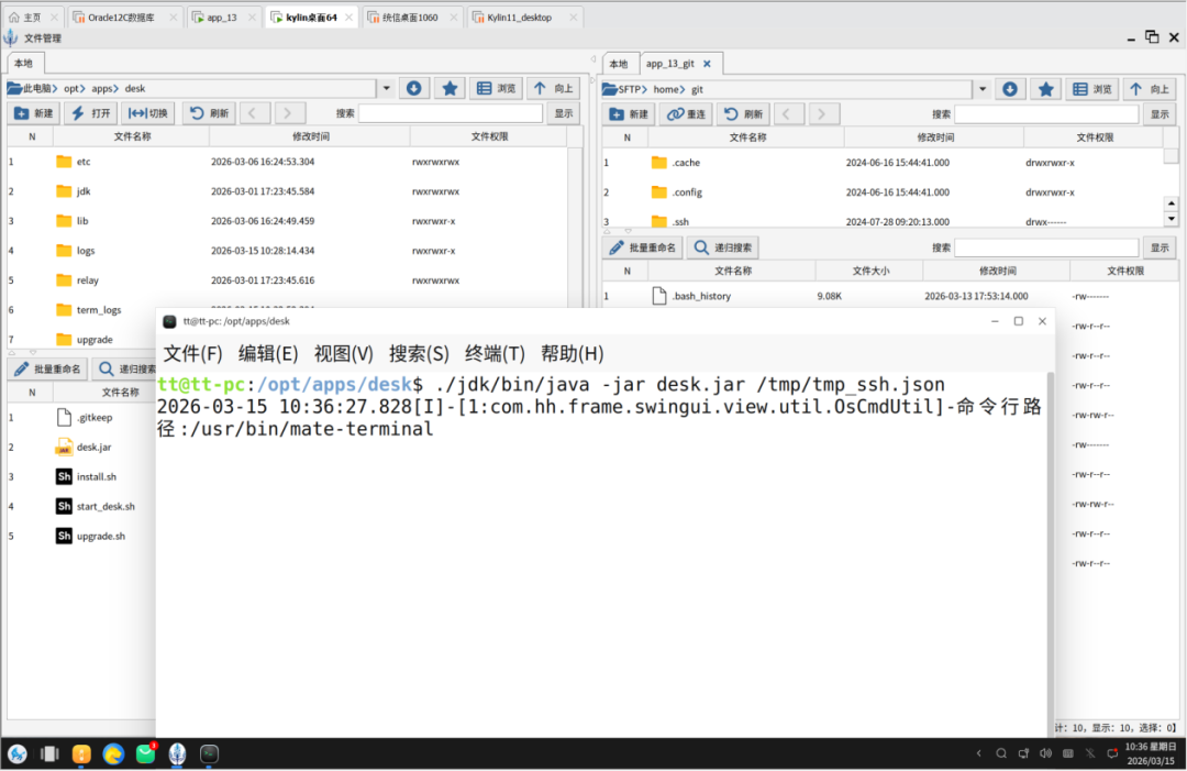 无论使用DESK或者DBCS和堡垒机对接都非常容易,而且能够运行在各种信创操作系统和CPU架构上。以DESK拉起SSH终端和服务器为例: