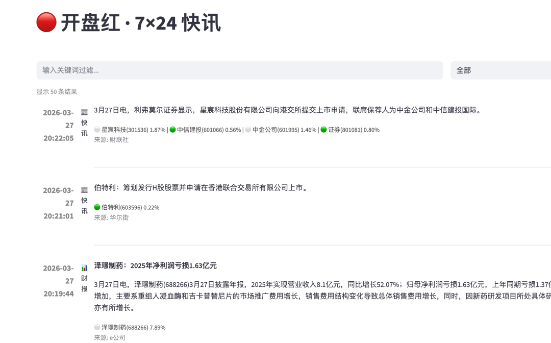st.title("🔴 开盘红 · 7×24 快讯")