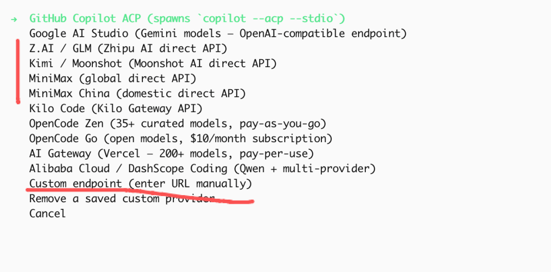 默认提供的直连API 土豪可以上, 推荐使用自定义endpoint。 想要体验好建议用 coding plan。