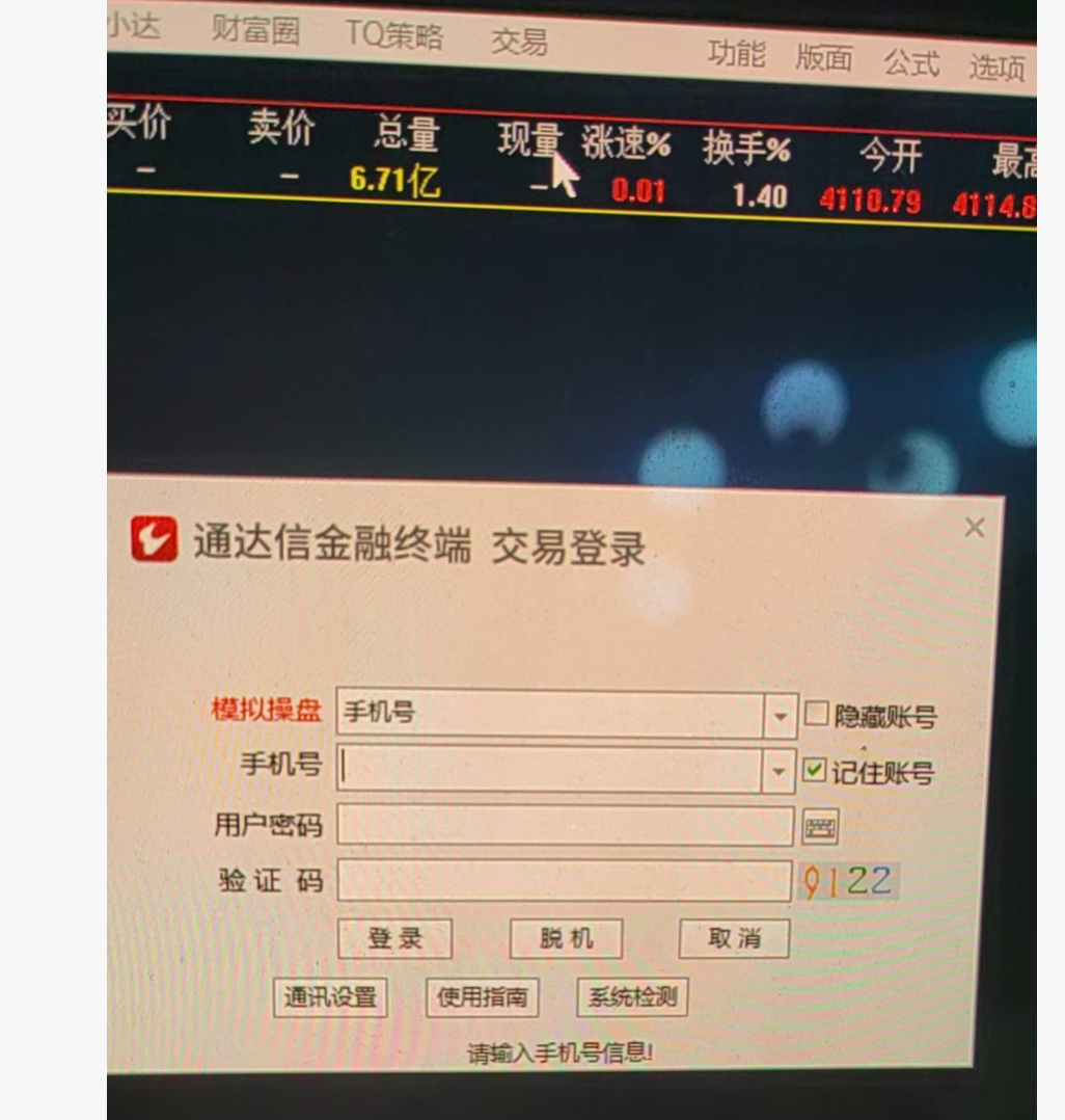 先下载 金融终端(量化模拟)V7.73, 交易---内嵌模拟交易, 用手机号码、密码登录。