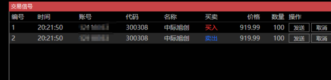 print("\n【步骤7】买入中际旭创 100股 @ 919.99...")