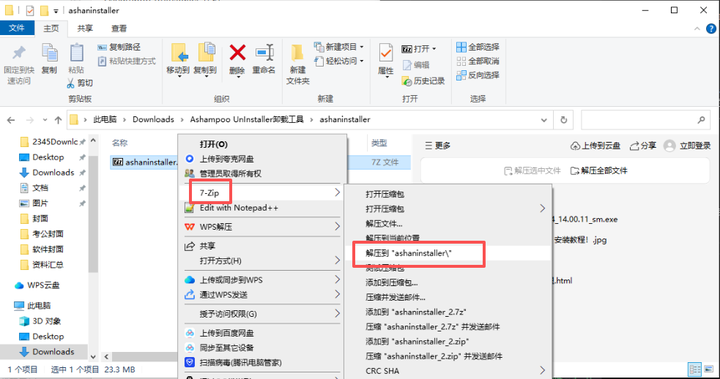1.点击上面下载安装包,下载后解压(不要在网盘里解压),一般我分享的都是7-ZIP压缩包,所以要用他来解压。