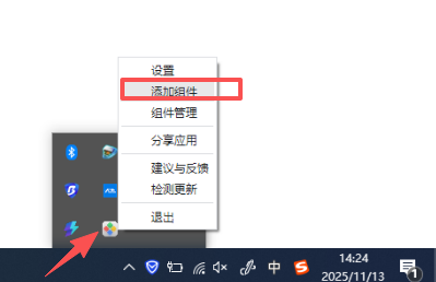 (运行后点击右下角的软件图标,选择“添加组件”即可调出界面。)