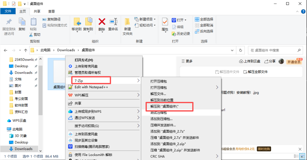 1.点击上面下载安装包,下载后解压(不要在网盘里解压),一般我分享的都是7-ZIP压缩包,所以要用他来解压。