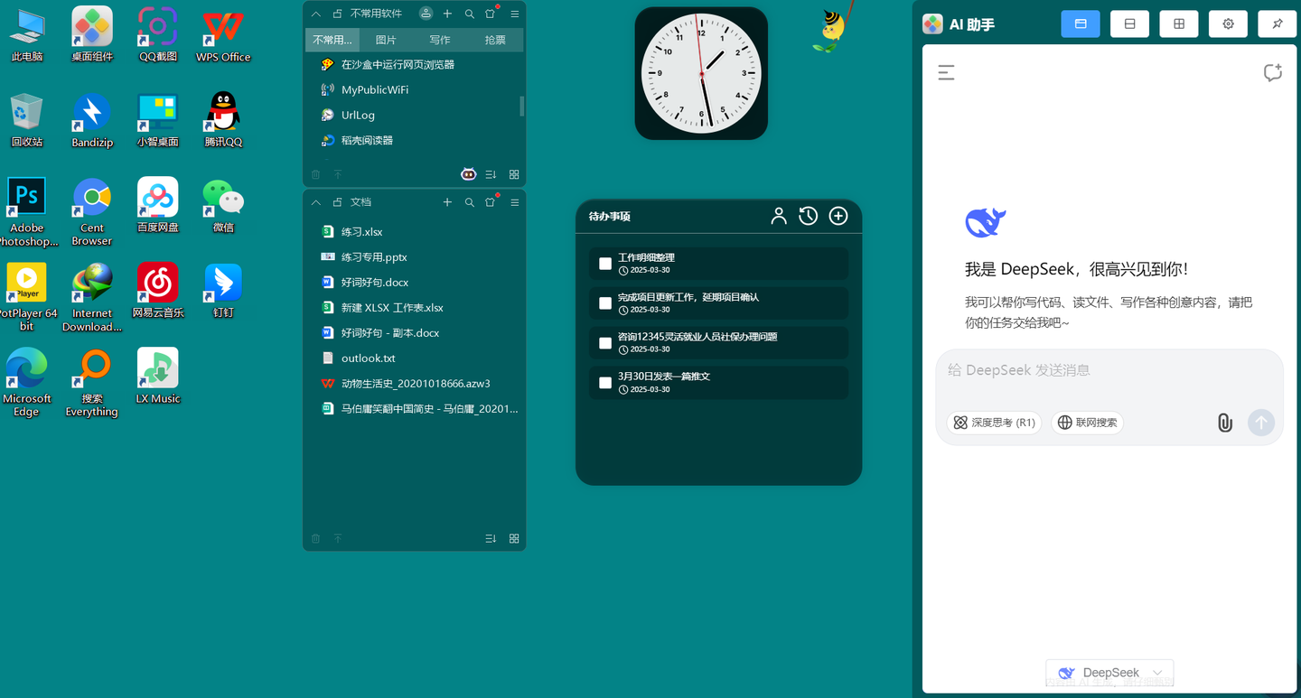 这款 PC 端桌面组件,工具简单小巧还是免费的!组件还在不断更,自己想改也能 DIY,这点太加分了,桌面组件这款软件可以根据自己的喜好,对于软件提供的小组件进行组合,就可以生成一个个性化的桌面,它可以对桌面的文件进行分类归纳,让桌面变得干净,分组有逻辑,便于查找。
