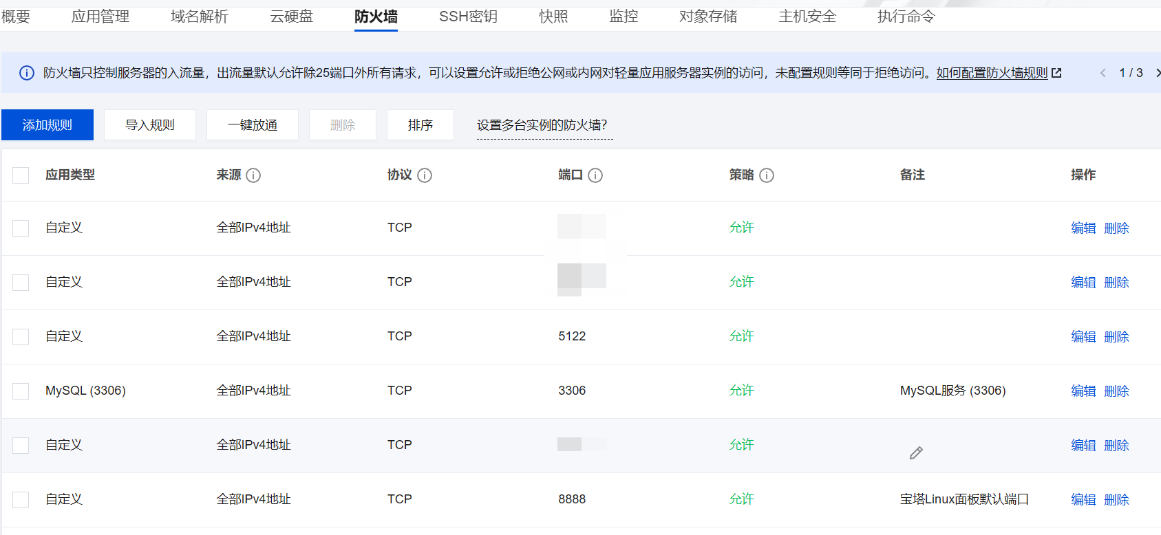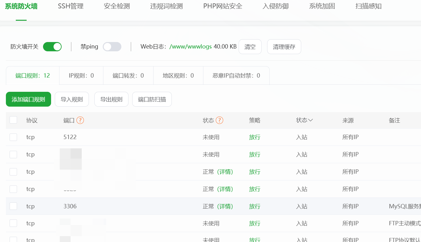为啥腾讯云服务器添加了端口,宝塔面板安全页面显示未使用?