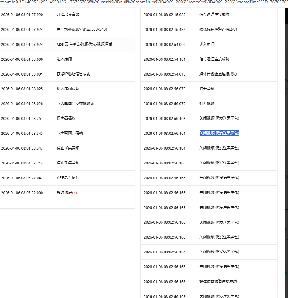 trtc 用户从PC端进入房间后,存在用户一直加载中显示黑屏,另一个用户从app‘端进入正常,用户网络正常,查看控制台记录显示如下