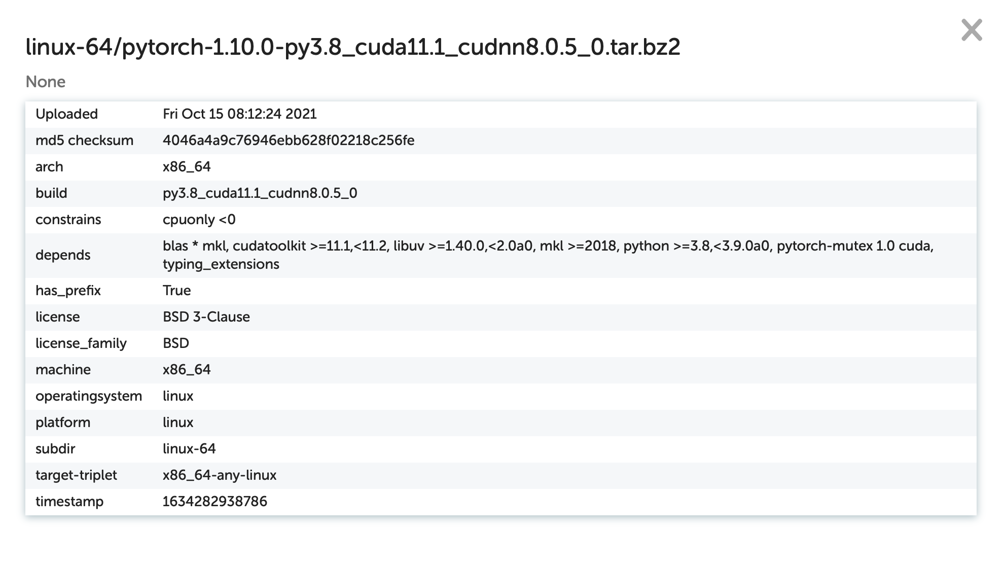pytorch pytorch/linux-64::pytorch-1.10.0-py3.8_cuda11.1_cudnn8.0.5_0其中pytorch是gpu one。