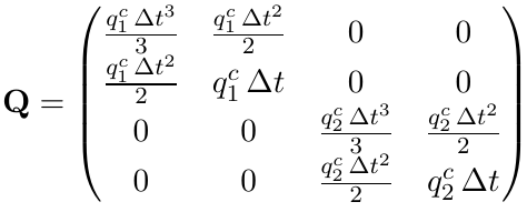 Q2d = [[dt ** 3 / 3, dt ** 2 / 2],
