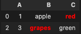 filtered.style.apply(lambda x: compare.applymap(color_cells), axis=None)会产生这样的东西: