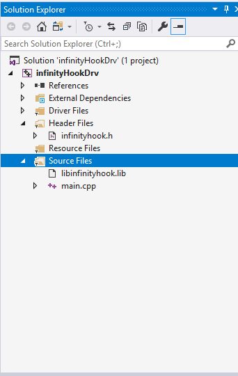 我已经下载了infinityHook开源项目,在Windows8.1上的VS2017社区中成功地编译了它(包括发行版和调试编译)。现在,我正尝试使用我的项目中的# libinfinityhook.lib注释指令链接文件,如下所示: