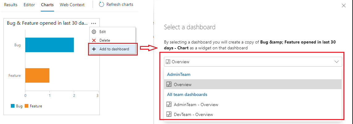 当然,您可以设置一个关于在过去30天中打开的bug和特性的查询图表。