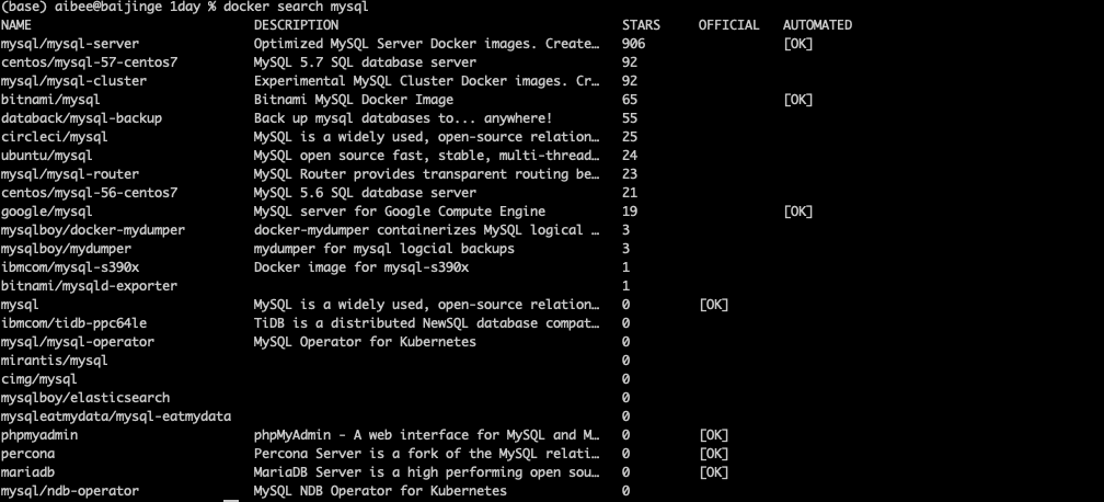 因为我访问了docker并搜索mysql,它向我展示了10K+。
