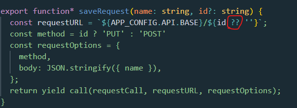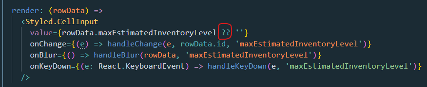 下午好!我正在用打字本写react.js。最近移到一台新计算机上,注意到语法突出显示不能正常工作。如果代码中有一个双问号(??-空合并运算符),就会发生这种情况。