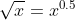 x**0.5如果您想了解x**0.5vs math.sqrt(x) 阅读这篇文章的性能