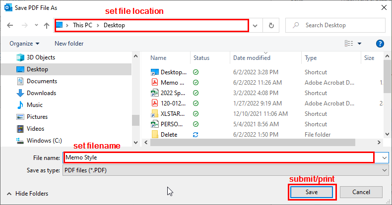 ' Assign the window title of the save as pdf dialogue