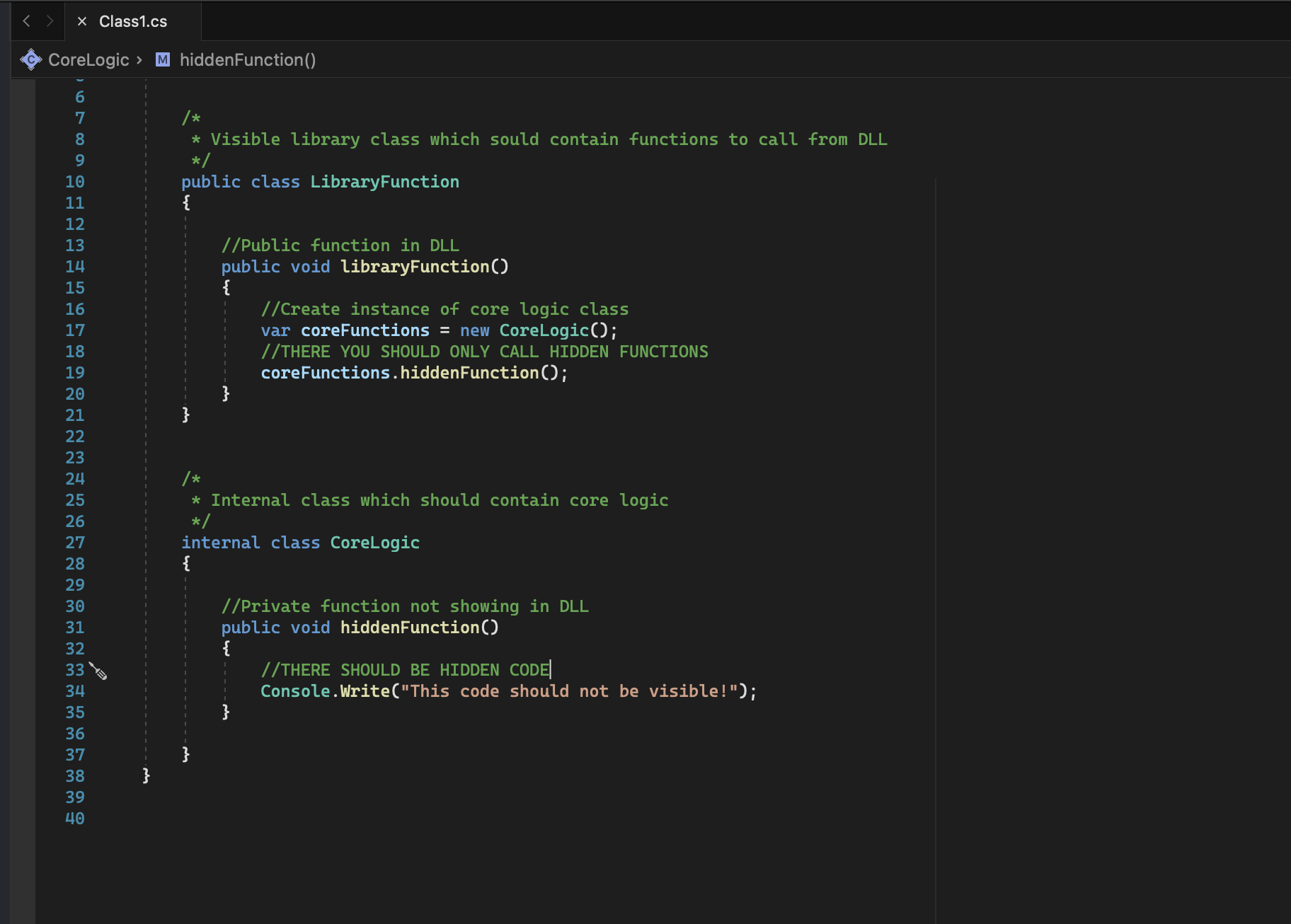 你要找的是个混混者。这不是一种防弹策略,但它将把反编译代码的复杂性提升到更高的水平。还要记住,除非您有删除调试符号,否则当您在本地机器上使用库时,它基本上只是直接引用您的源代码。