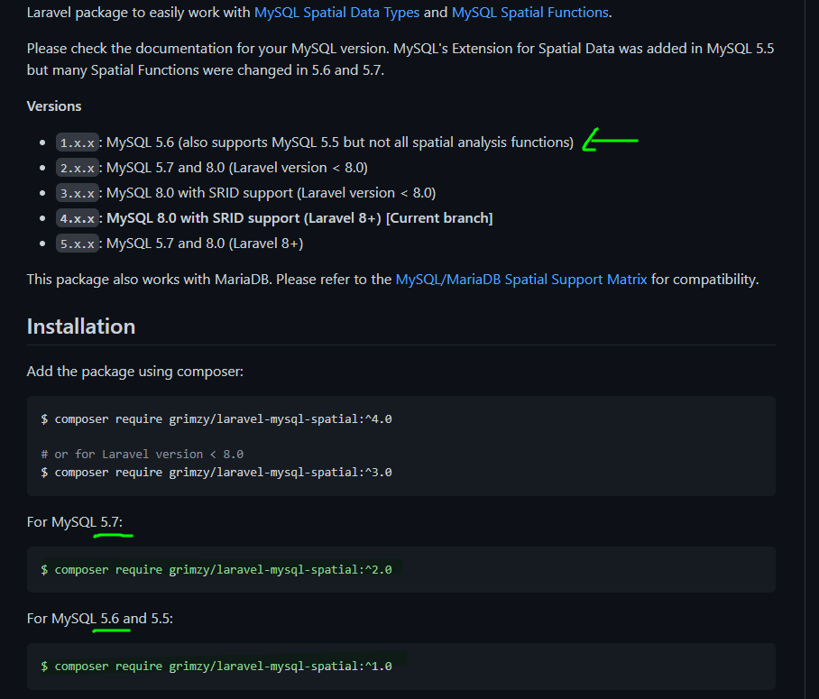composer.json需要grimzy/laravel-mysql-spatial dev-l9-兼容性,找到了dev-fix/locale---composer.json,dev-mysql-5.6,dev-mysql 2.0.0,.,2.2.3,3.0.0,4.0.0,4.0.x-dev ( dev-master的别名),5.0.0