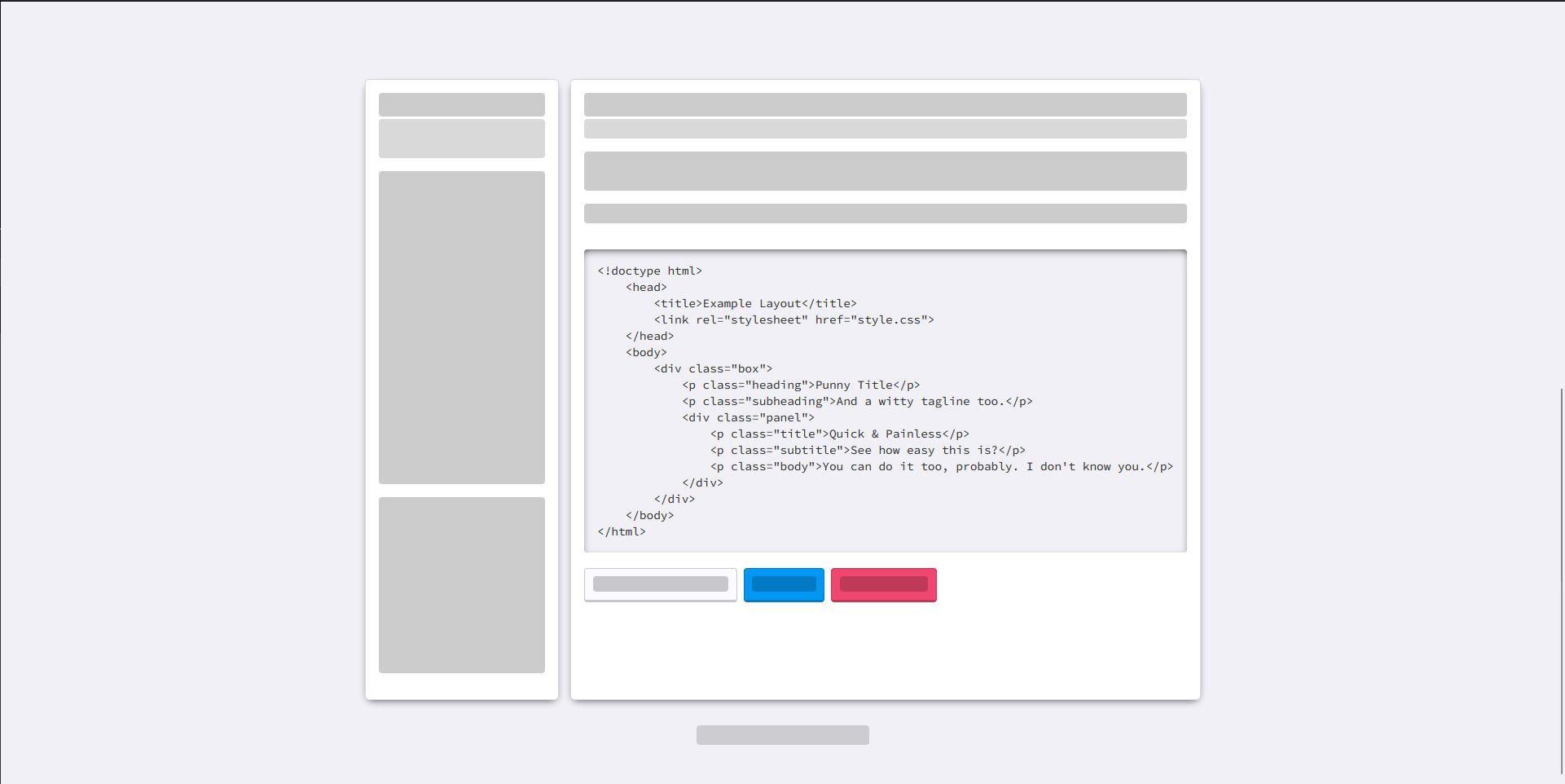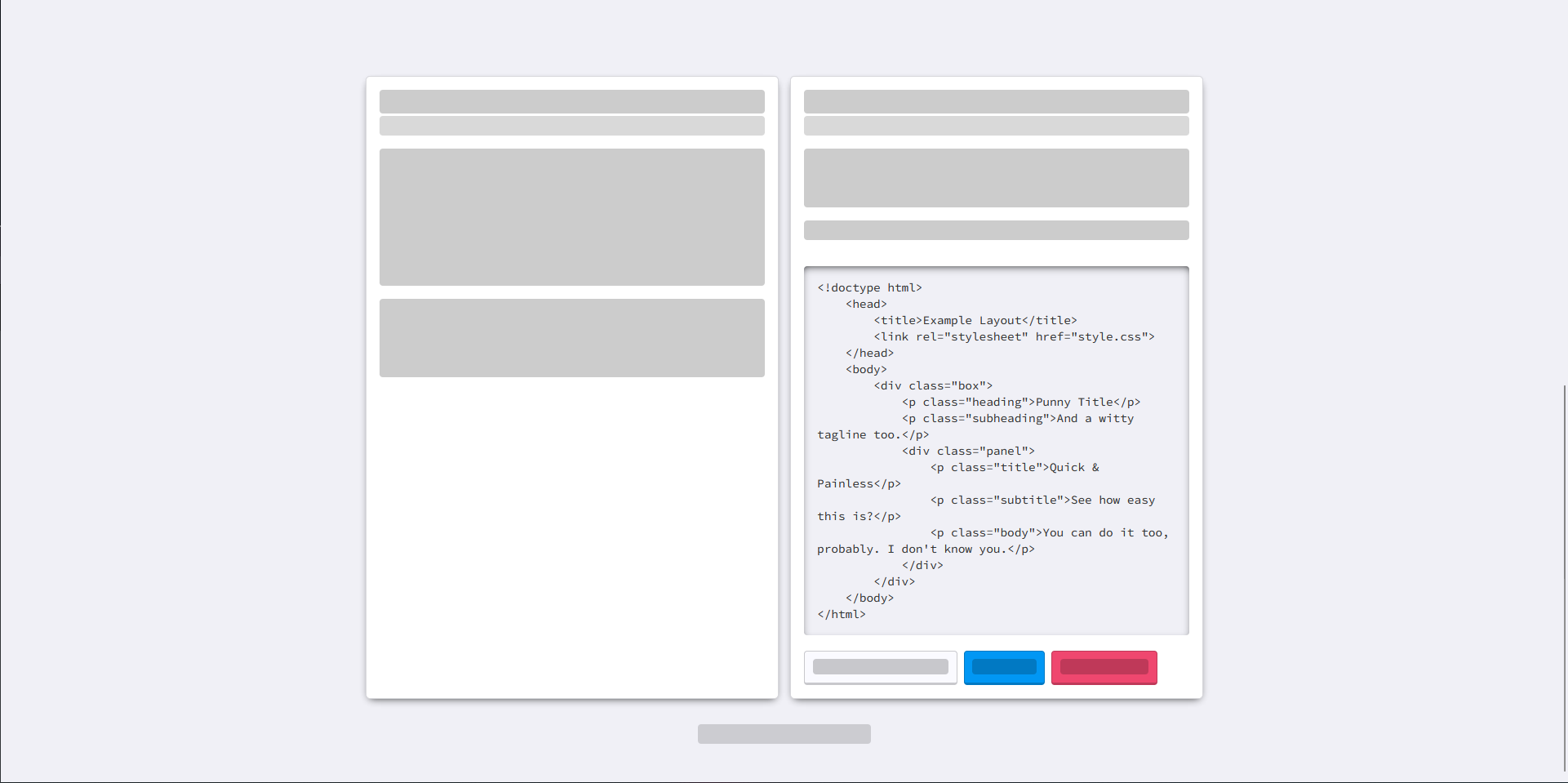 选择器,以便生成样式化的代码块,就像您在GitHub或其他地方看到的那样。我使用flexbox来进行布局,并且在一个"box“div的内部有两个”面板“div,其中一个有一个代码块(它只是<pre><code>