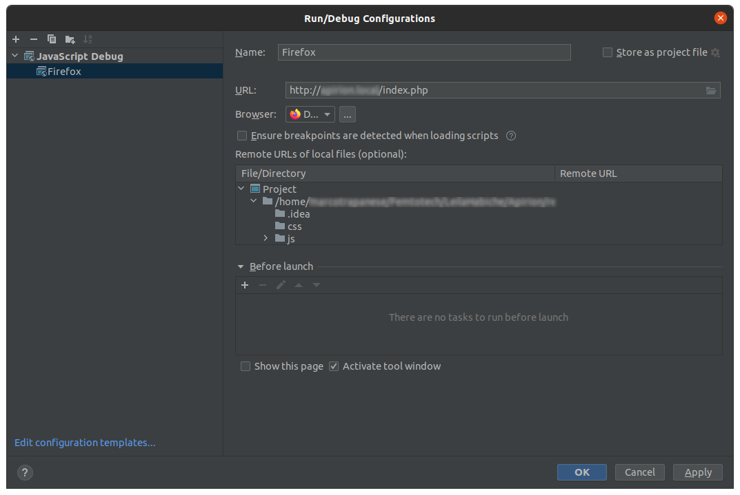 要使用火狐调试JavaScript,您需要使用Firefox远程类型的运行/调试配置(需要手动创建和使用),并在火狐中预先启用远程调试。https://www.jetbrains.com/help/phpstorm/2021.1/debugging-javascript-in-firefox.html有所有的信息。