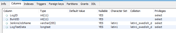 你的新桌子应该是这样的,LogID,BuildID,JenkinsJobName,LogTextData。
