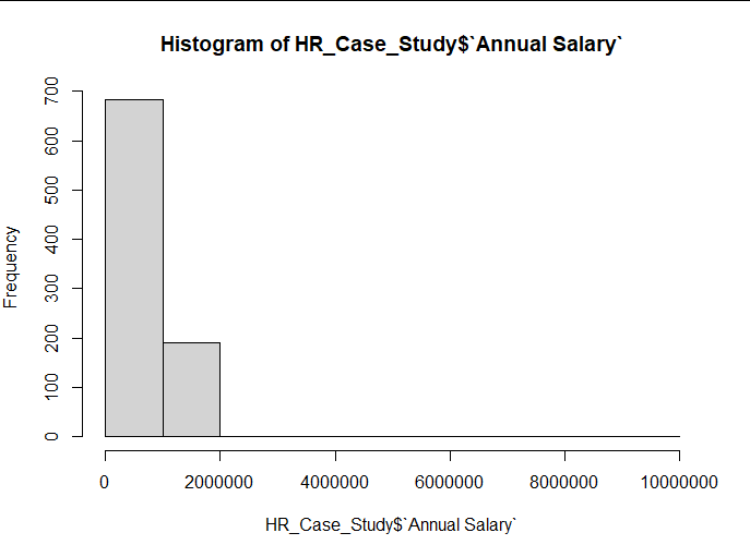 我是从csv中的一列做直方图,值从10万到10,000,000不等,但是当我把数据转换成r,并从那一列生成直方图时,x轴就会混乱,当最大值为10,000,000时,显示出非常大的范围。