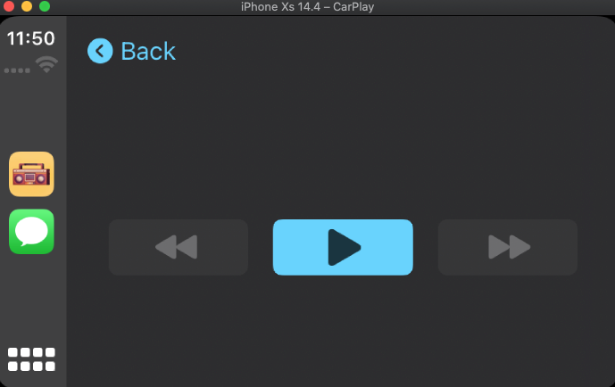 当您在CarPlay模拟器上启动应用程序,而现在的播放模板正在显示时,很可能您的音频将播放,但播放机的状态将显示,如果您有一个,这将无法在您的CPListTemplate中准确地显示isPlaying状态。