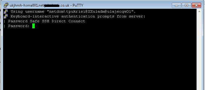 domain/user-name@pam-functional-account@unix-host@pam-load-balancer-address:4422在PuTTY命令行中,我使用了以下命令