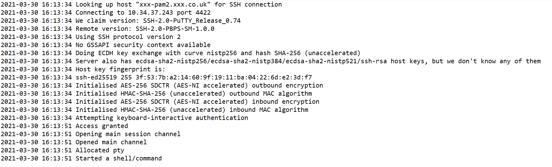 2021-03-30 17:39:43 Looking up host "xxx-pam1.xxx.co.uk" for SSH connection