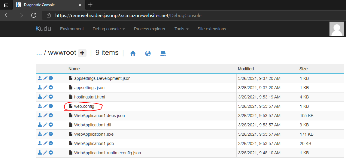 我试图从发布到Azure的“纯”web应用程序(即没有MVC)返回的响应中添加/删除某些http头。