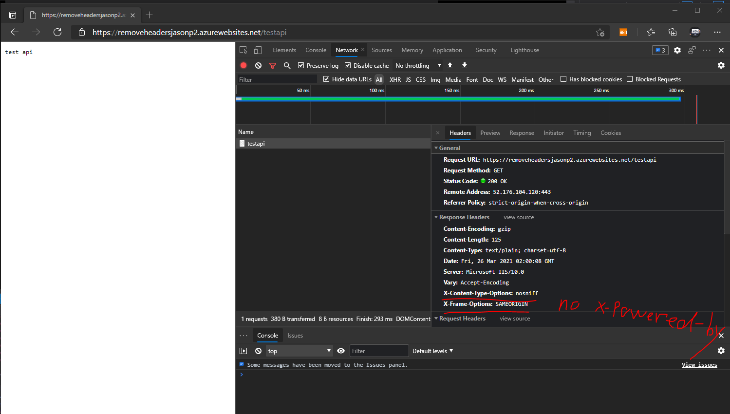 </configuration>这在我使用IISExpress的开发环境中运行得很好。当应用程序发布到Azure时,它也可以正常工作,因为应用程序服务没有配置为多实例缩放。然而,当应用程序服务被配置为多实例缩放(在我的例子中是三个实例)时,来自应用程序的响应包含“X驱动-通过”和没有“X-内容-类型-选项”或“X-帧-选项”。