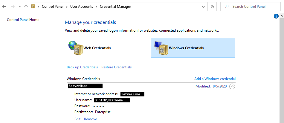 经过一些额外的研究和故障排除后,我确定遇到上述问题的用户将服务帐户存储在Windows凭据管理器中: