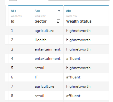 IF {Fixed [Sector], [Wealth Status]: COUNT([weal.csv])} =
