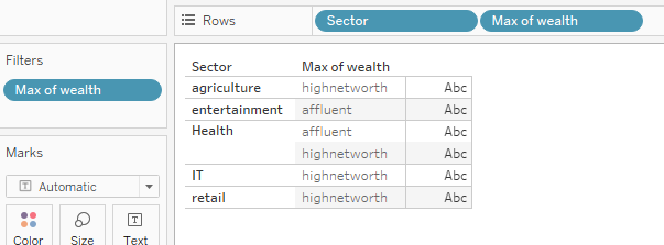 {FIXED [Sector]: MAX({Fixed [Sector], [Wealth Status]: COUNT([weal.csv])})}