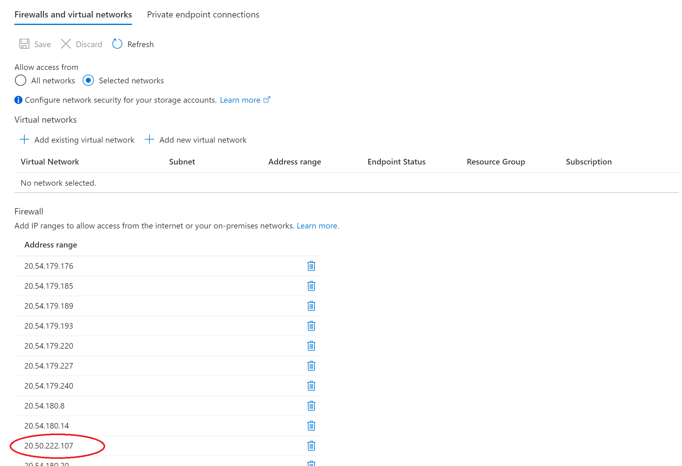 当您将存储帐户配置为允许从特定的公共internet IP地址范围访问时,那里是一种特例。
