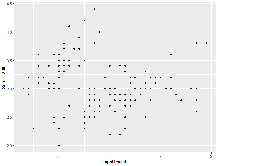 ggplot(data=iris, mapping = aes(Sepal.Length, Sepal.Width)) + geom_point()