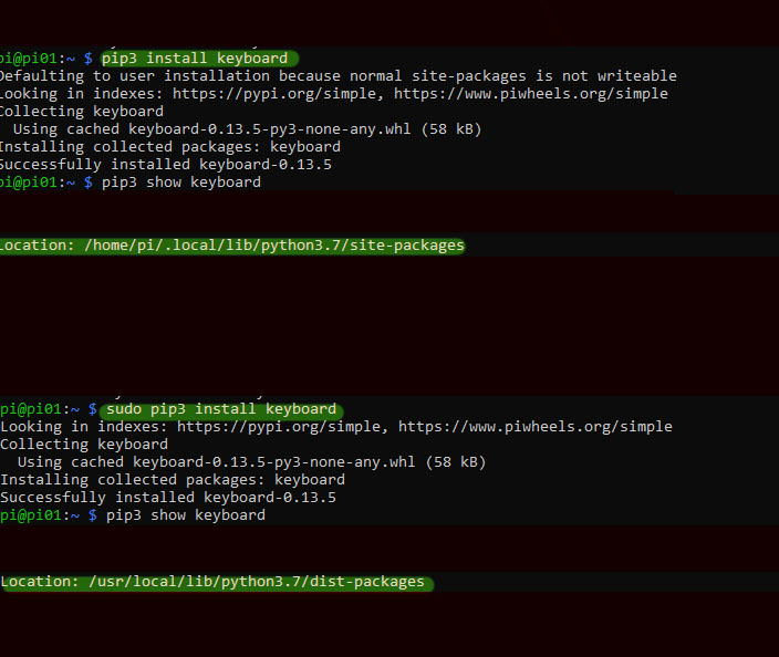 它创造了一个“..本地”?我从来没见过。每当我在终端中启动python3并‘导入键盘’。找不到模块。我了解到sys.path只使用以下目录