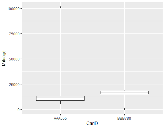 ggplot(data = df, aes(x = CarID, y = Mileage)) +