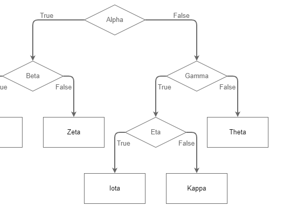 但是,所有svg元素目前都是矩形,所有的直线现在都通过“弯曲”链接连接起来,我希望svgs是“决策”节点的钻石,链接类似于来自钻石的两个角的图像,如果下一个是决定,则结束在菱形的顶部,如果下一个是操作。