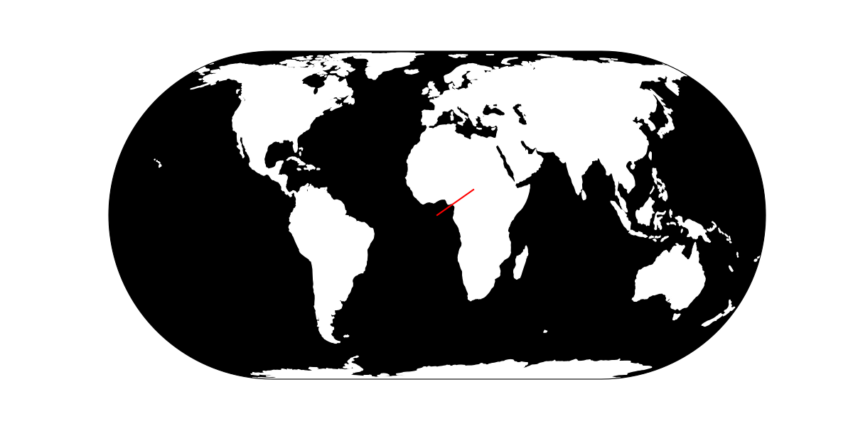 ax.plot(longitude, latitude, color='red', transform=ccrs.PlateCarree())您使用的是EckertIV投影,因此必须通知轴,您的经度和纬度值引用了PlateCarree投影。这就是为什么您必须在set_extent中使用set_extent中的transform kw (如果不使用set_global)和在plot中使用transform kw。