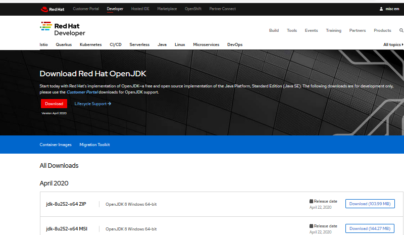 red站点有一个红色下载按钮,下面列出了从java 8(即1.8)开始的一系列Java版本,这有点老了。
