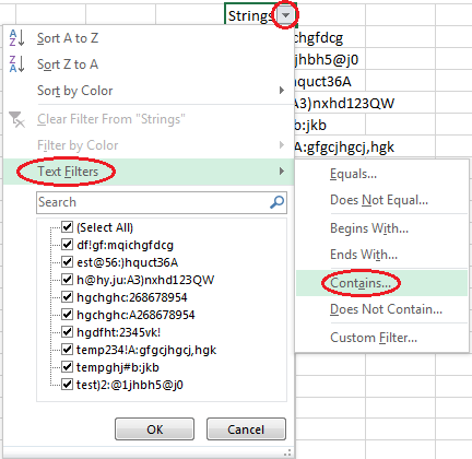 A1设置为“strings”)并过滤该列。