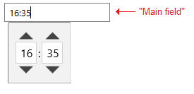 弹出TextBoxes和主字段TextBox应该是同步的。我的意思是,当用户通过单击箭头键或键入“小时”字段来更改小时时,应该更新主文本框(包含文本16:35),反之亦然。弹出窗口中的字段仅限于接受0-9个字符。当主TextBox时间字符串更改时,将解析字符串,并更新弹出窗口中的两个字段。如果用户在主TextBox中键入无效的时间字符串,而控件无法从中提取时间和分钟来更新弹出的TextBoxes,那么我就什么也不做了。